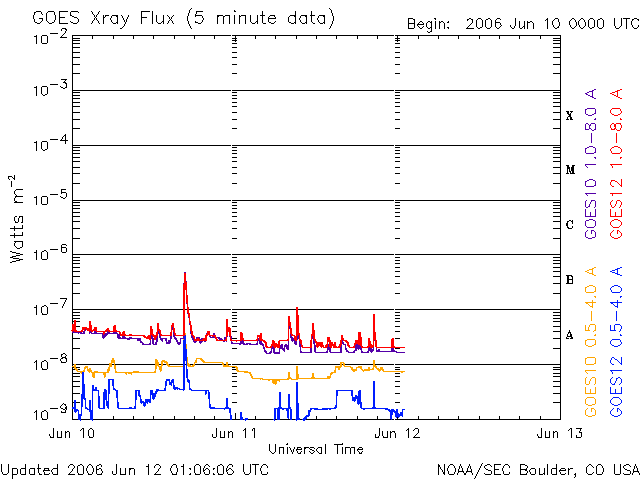 (c) NOAA/SEC ![]() GOES衛星の太陽X線データ (c) NOAA/SEC ![]() SOHO衛星のMDIカメラによる太陽黒点 (c) SOHO (ESA & NASA) ![]() | |||||||||||||||||||||||||||||||||||||||||||||||||||||||