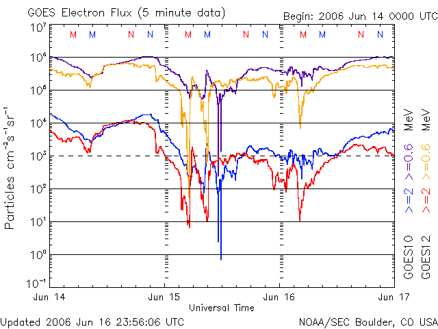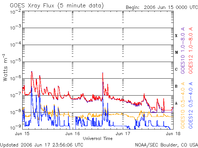 (c) NOAA/SEC ![]() SOHO衛星のMDIカメラによる太陽黒点 (c) SOHO (ESA & NASA) ![]() GOES衛星の太陽X線データ (c) NOAA/SEC ![]() | ||||||||||||||||||||||||||||||||||||||||||||||||||||||||