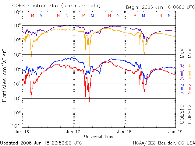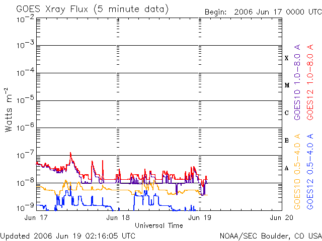 (c) NOAA/SEC ![]() GOES衛星の太陽X線データ (c) NOAA/SEC ![]() SOHO衛星のMDIカメラによる太陽黒点 (c) SOHO (ESA & NASA) ![]() | ||||||||||||||||||||||||||||||||||||||||||||||||||||||||