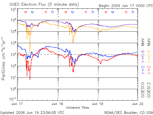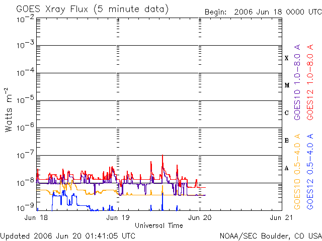 (c) NOAA/SEC ![]() GOES衛星の太陽X線データ (c) NOAA/SEC ![]() SOHO衛星のMDIカメラによる太陽黒点 (c) SOHO (ESA & NASA) ![]() | ||||||||||||||||||||||||||||||||||||||||||||||||||||||||
