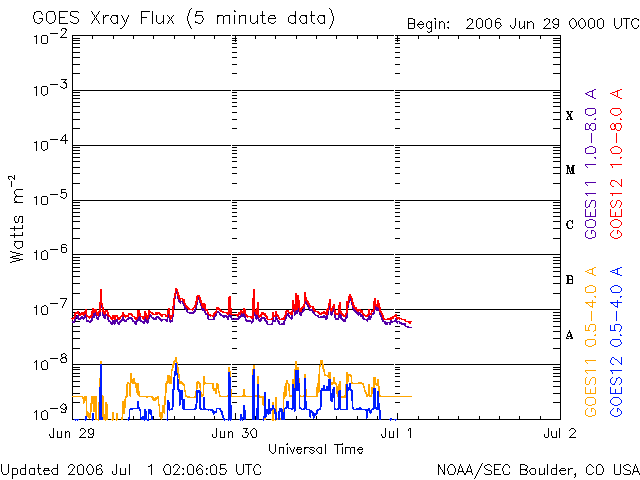 (c) NOAA/SEC ![]() SOHO衛星のMDIカメラによる太陽黒点 (c) SOHO (ESA & NASA) ![]() GOES衛星の太陽X線データ (c) NOAA/SEC ![]() | ||||||||||||||||||||||||||||||||||||||||||||||||||||||||