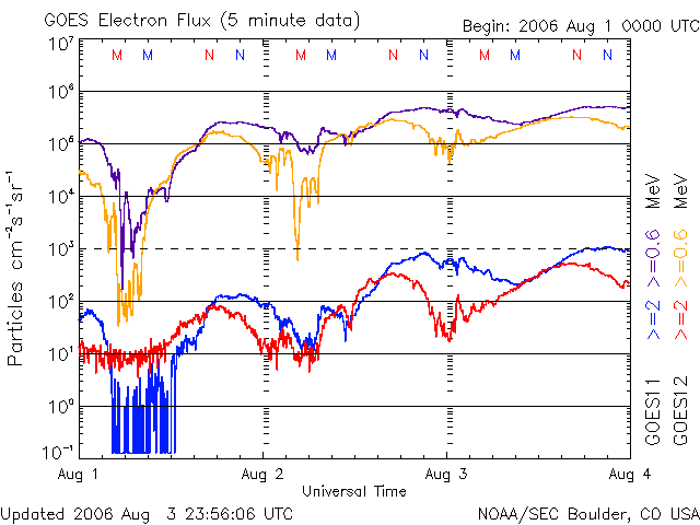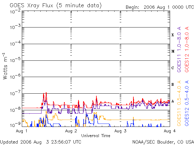 (c) NOAA/SEC ![]() SOHO衛星のMDIカメラによる太陽黒点 (c) SOHO (ESA & NASA) ![]() GOES衛星の太陽X線データ (c) NOAA/SEC ![]() | ||||||||||||||||||||||||||||||||||||||||||||||||||||||||
