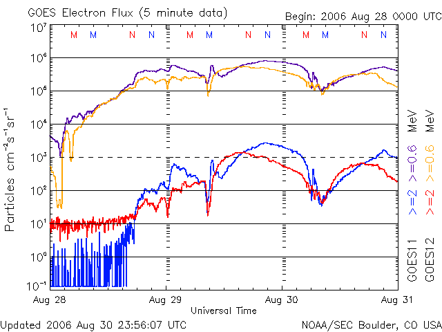 (c) NOAA/SEC ![]() SOHO衛星のMDIカメラによる太陽黒点 (c) SOHO (ESA & NASA) ![]() GOES衛星の太陽X線データ (c) NOAA/SEC ![]() | ||||||||||||||||||||||||||||||||||||||||||||||||||||||||||||