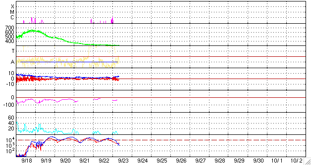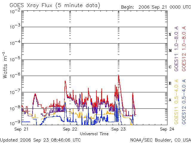 (c) NOAA/SEC ![]() SOHO衛星のMDIカメラによる太陽黒点 (c) SOHO (ESA & NASA) ![]() GOES衛星の太陽X線データ (c) NOAA/SEC ![]() | ||||||||||||||||||||||||||||||||||||||||||||||||||||||||||||
