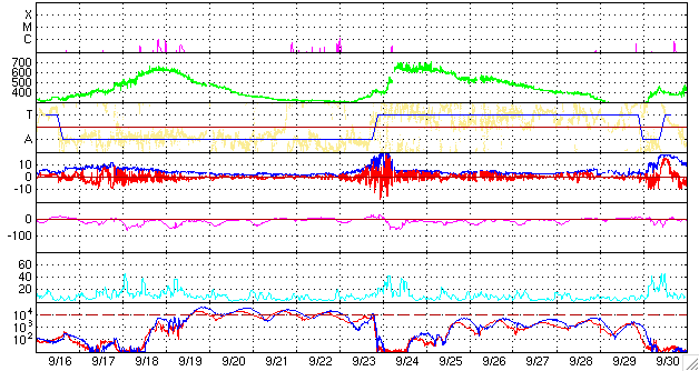 (c) NOAA/SEC ![]() SOHO衛星のMDIカメラによる太陽黒点 (c) SOHO (ESA & NASA) ![]() GOES衛星の太陽X線データ (c) NOAA/SEC ![]() | ||||||||||||||||||||||||||||||||||||||||||||||||||||||||||||