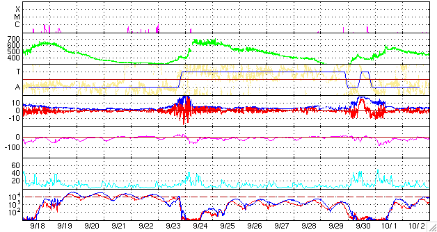 (c) NOAA/SEC ![]() SOHO衛星のMDIカメラによる太陽黒点 (c) SOHO (ESA & NASA) ![]() GOES衛星の太陽X線データ (c) NOAA/SEC ![]() | ||||||||||||||||||||||||||||||||||||||||||||||||||||||||||||
