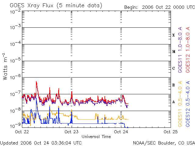 (c) NOAA/SEC ![]() SOHO衛星のMDIカメラによる太陽黒点 (c) SOHO (ESA & NASA) ![]() GOES衛星の太陽X線データ (c) NOAA/SEC ![]() | ||||||||||||||||||||||||||||||||||||||||||||||||||||||||||||||||