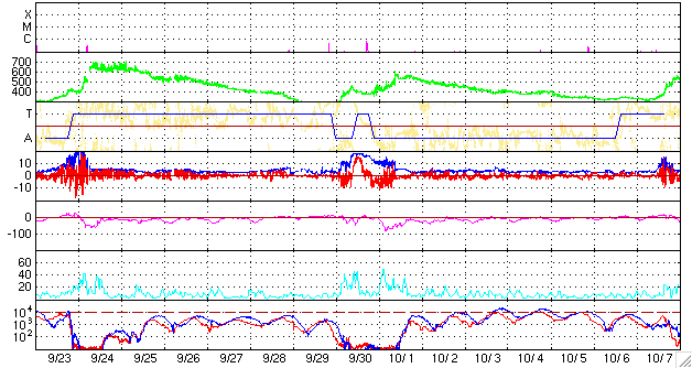 27日周期の図を見ると、前周期は、9月30日から磁場の乱れが始まり、