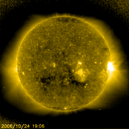 SOHO EIT284で、コロナホールが見やすい位置に来ています。