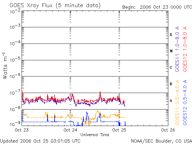 X線のグラフは低レベルで安定していて、フレア活動はとても穏やかです。