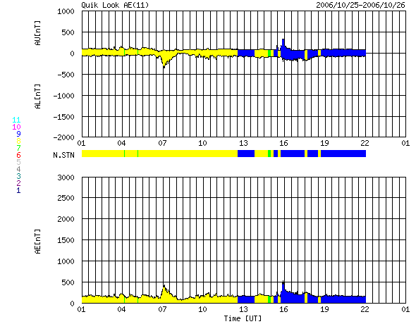 下段のAEグラフの値が高くなると、オーロラ活動が活発化しています。