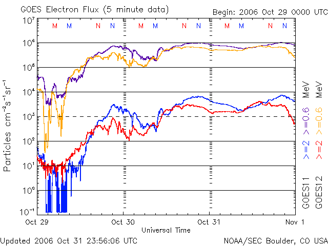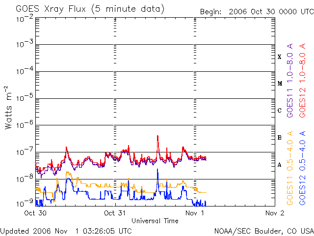 (c) NOAA/SEC ![]() SOHO衛星のMDIカメラによる太陽黒点 (c) SOHO (ESA & NASA) ![]() GOES衛星の太陽X線データ (c) NOAA/SEC ![]() | ||||||||||||||||||||||||||||||||||||||||||||||||||||||||||||
