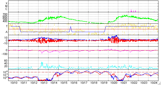 ただ、X線のグラフを見ると、小さく、Bクラスの変動が続いていて、