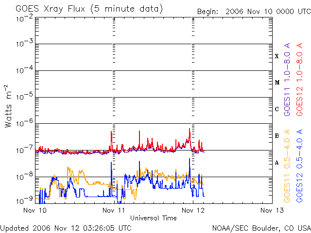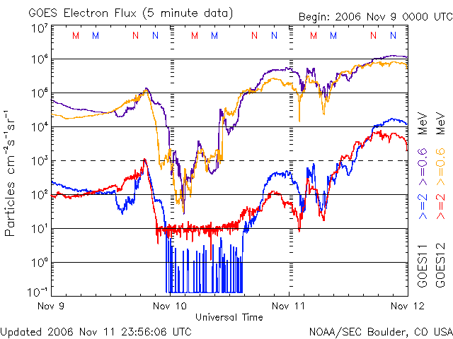 青線のGOES11は警戒ライン(10の4乗の線)を超え、赤線のGOES12も間近に迫っています。