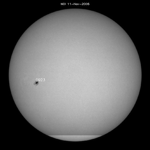 SOHO衛星のMDIカメラによる太陽黒点