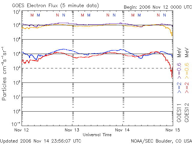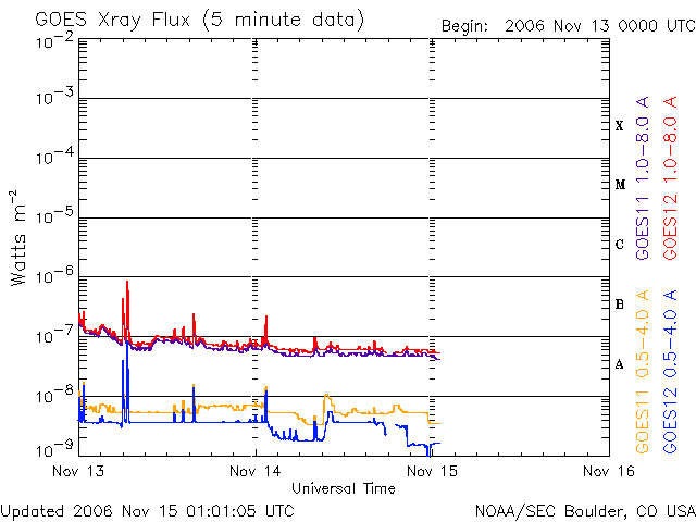 (c) NOAA/SEC ![]() SOHO衛星のMDIカメラによる太陽黒点 (c) SOHO (ESA & NASA) ![]() GOES衛星の太陽X線データ (c) NOAA/SEC ![]() | ||||||||||||||||||||||||||||||||||||||||||||||||||||||||||||
