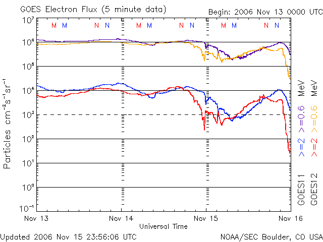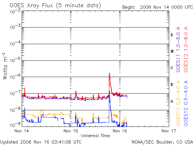 (c) NOAA/SEC ![]() SOHO衛星のMDIカメラによる太陽黒点 (c) SOHO (ESA & NASA) ![]() GOES衛星の太陽X線データ (c) NOAA/SEC ![]() | ||||||||||||||||||||||||||||||||||||||||||||||||||||||||||||