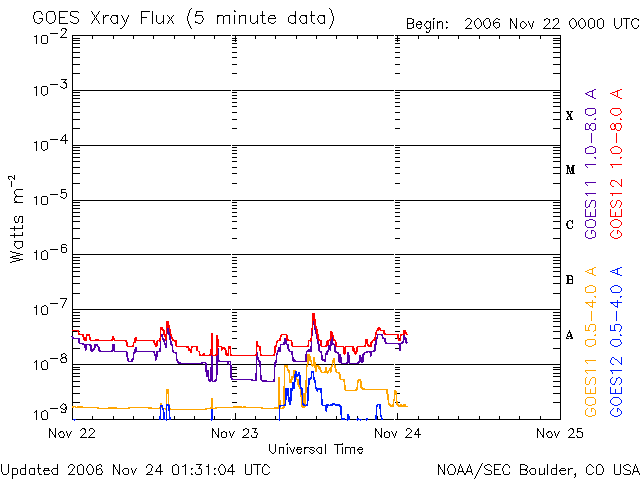 (c) NOAA/SEC ![]() SOHO衛星のMDIカメラによる太陽黒点 (c) SOHO (ESA & NASA) ![]() GOES衛星の太陽X線データ (c) NOAA/SEC ![]() | ||||||||||||||||||||||||||||||||||||||||||||||||||||||||||||