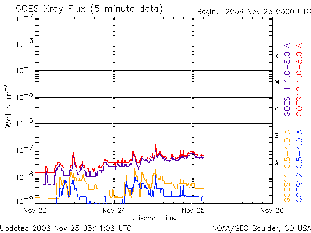 (c) NOAA/SEC ![]() SOHO衛星のMDIカメラによる太陽黒点 (c) SOHO (ESA & NASA) ![]() GOES衛星の太陽X線データ (c) NOAA/SEC ![]() | ||||||||||||||||||||||||||||||||||||||||||||||||||||||||||||