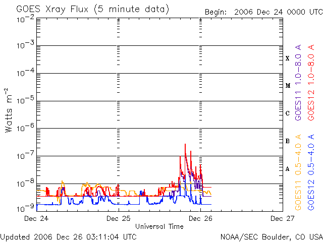 (c) NOAA/SEC ![]() SOHO衛星のMDIカメラによる太陽黒点 (c) SOHO (ESA & NASA) ![]() GOES衛星の太陽X線データ (c) NOAA/SEC ![]() | ||||||||||||||||||||||||||||||||||||||||||||||||||||||||||||