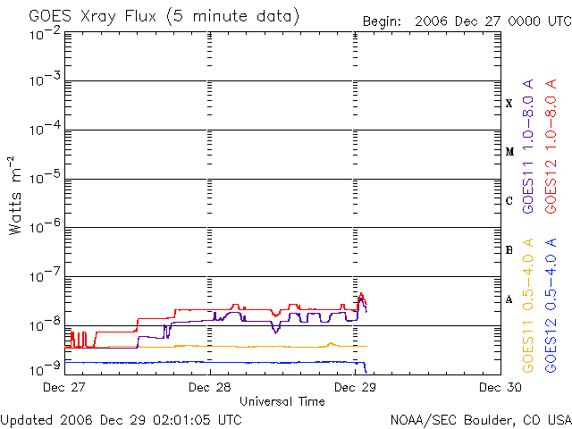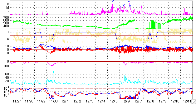 (c) NOAA/SEC ![]() SOHO衛星のMDIカメラによる太陽黒点 (c) SOHO (ESA & NASA) ![]() GOES衛星の太陽X線データ (c) NOAA/SEC ![]() | ||||||||||||||||||||||||||||||||||||||||||||||||||||||||||||