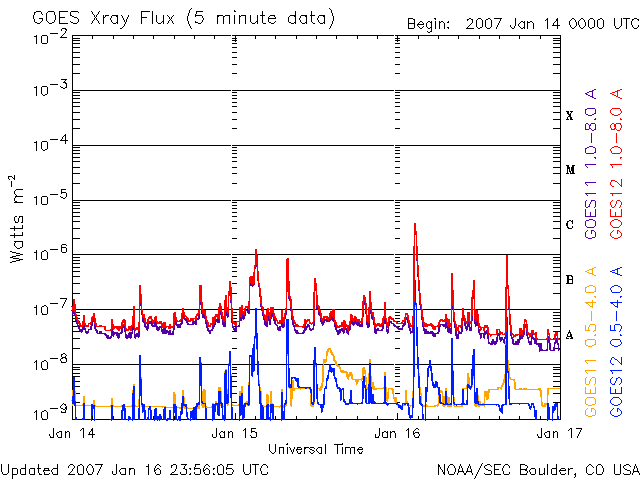 (c) NOAA/SEC ![]() GOES衛星の太陽X線データ (c) NOAA/SEC ![]() SOHO衛星のMDIカメラによる太陽黒点 (c) SOHO (ESA & NASA) ![]() | |||||||||||||||||||||||||||||||||||||||||||||||||||||||||||