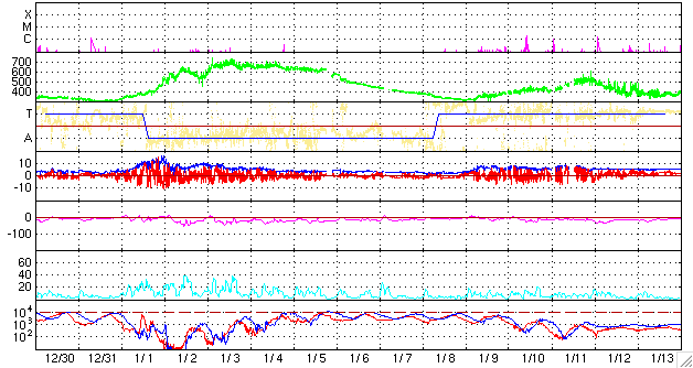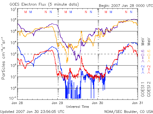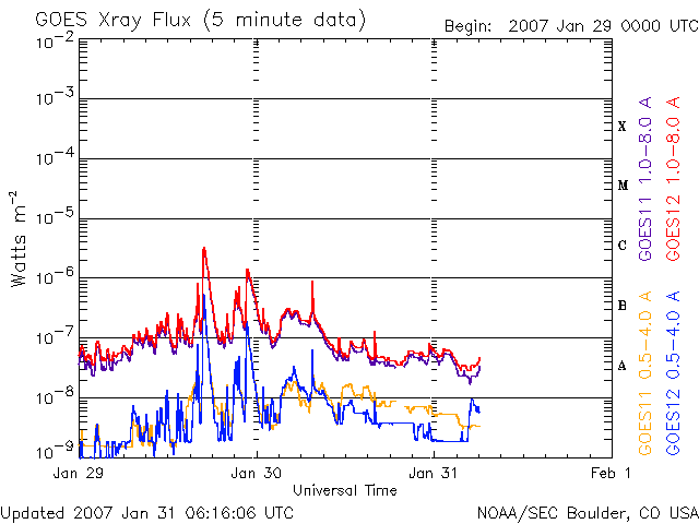 (c) NOAA/SEC ![]() GOES衛星の太陽X線データ (c) NOAA/SEC ![]() | ||||||||||||||||||||||||||||||||||||||||||||||||||||||||||||