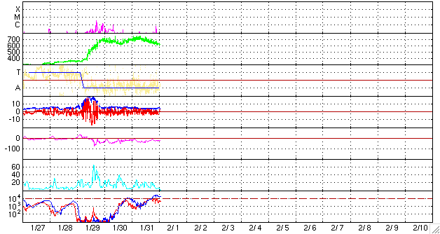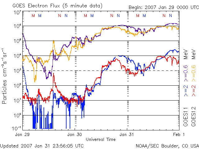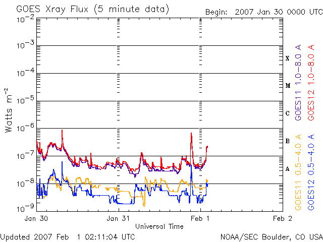 (c) NOAA/SEC ![]() GOES衛星の太陽X線データ (c) NOAA/SEC ![]() | ||||||||||||||||||||||||||||||||||||||||||||||||||||||||||||