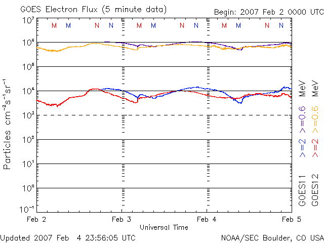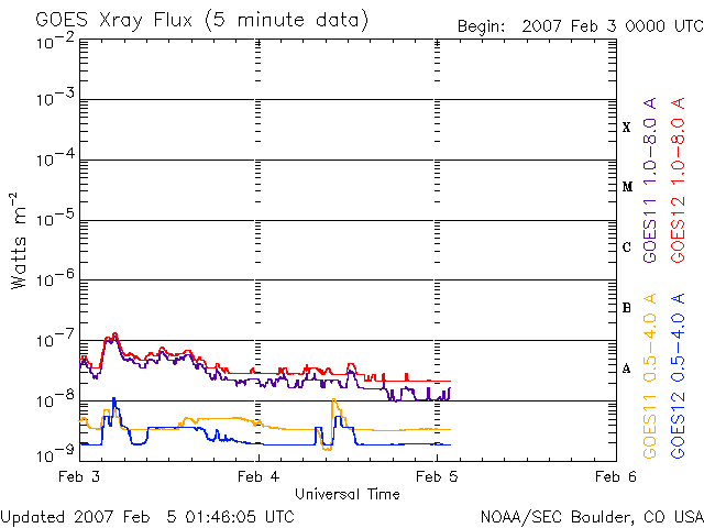 (c) NOAA/SEC ![]() GOES衛星の太陽X線データ (c) NOAA/SEC ![]() SOHO衛星のMDIカメラによる太陽黒点 (c) SOHO (ESA & NASA) ![]() | ||||||||||||||||||||||||||||||||||||||||||||||||||||||||||||