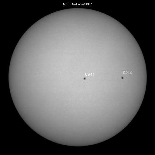 2007/ 2/ 5 10:47 更新 太陽風の速度は遅く(350km/秒)、オーロラも穏やかです。太陽も静穏です。 担当 篠原 今、太陽面には940、941のふたつのそっくりな黒点群が出現しています。 2日ほど時間を戻して、3日の写真を紹介します。 最初の写真は、SOHO衛星から普通の光で撮影した写真です。 右が940黒点群、左が941黒点群です。 940群の方には細かい黒点群も見られますが、 大きな目玉焼き黒点は、大きさも形もそっくりで、違いは見られません。 次の写真は、太陽面の磁場の分布を示しています(SOHOによる)。 黒点は強い磁場を持っていて、地球で見られる磁石と同じように、N極とS極があります。 この写真では白がN極、黒がS極を示しています。 黒点のある部分に濃い色が出現していますが、 右の940群の大きな黒点は白く、左の941群の大きな黒点は黒く見えています。 光で見るとそっくりな黒点群ですが、磁場で見ると違う極性を向いていたのです。 ただし、このことで黒点群の性質が変わるというわけではありません。 宇宙天気で注目するのは、磁場構造の複雑さです。 白と黒が複雑に混じり合って分布すると、その黒点群は大きなエネルギーを蓄えていて、 激しいフレア活動に対する注意が必要になります。 宇宙天気は全体的にとても穏やかです。 太陽風は速度350km/秒前後で低速、磁場強度も3nTに弱まっています。 オーロラの活動を示すAE指数のグラフはほとんど変化がなく、 磁気圏活動が穏やかであることを示しています。 27日周期の図を見ると、1月31日以降ぐんぐん速度(緑色)が低下している様子が分かります。 この後も、基本的には穏やかな太陽風が続くと思われます。 前周期の1月11-12日に見られている小さな速度の山が、 今周期もやってくるかもしれませんが(2月7-8日)、影響は小さなものです。 その後、2月10日くらいまでは穏やかな状態が続くでしょう。 放射線帯高エネルギー電子はやや高い状態が続いています。 ゆっくりと減衰しています。 太陽のフレア活動はたいへん穏やかです。 X線のグラフは最低レベルへ下がりつつあります。 黒点群は2つ見えていますが、どちらも活動度は低い状態です。 SOHO MDIカメラによる、940(右)、941(左)のふたつの黒点群。2月3日9時(世界時2月3日0時)。 (c) ESA & NASA ![]() SOHO MDIカメラによる、太陽磁場の様子。940の大きな黒点は白く(N極)、941は黒く(S極)見えている。 (c) ESA & NASA ![]() SOHO衛星のEIT284カメラの映像 (c) SOHO (ESA & NASA)