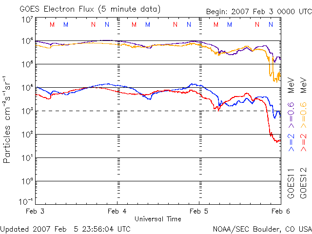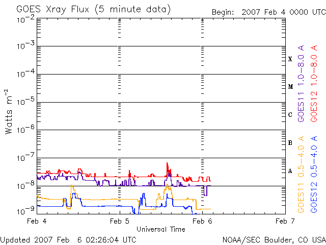 (c) NOAA/SEC ![]() GOES衛星の太陽X線データ (c) NOAA/SEC ![]() SOHO衛星のMDIカメラによる太陽黒点 (c) SOHO (ESA & NASA) ![]() | ||||||||||||||||||||||||||||||||||||||||||||||||||||||||||||