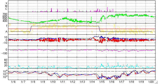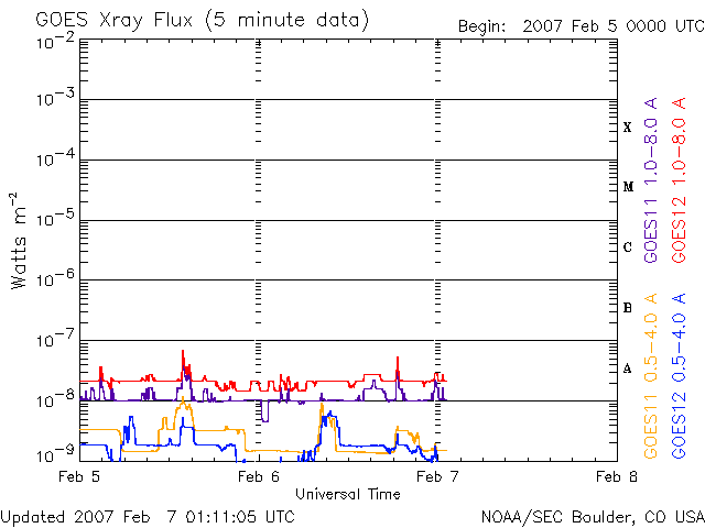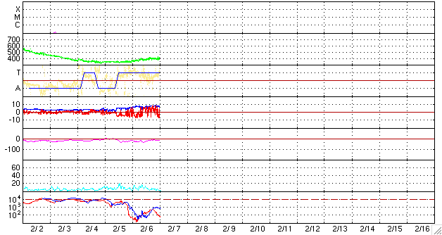 下段のAEグラフの値が高くなると、オーロラ活動が活発化しています。 (c) 京都大学, NICT ![]() SOHO衛星のMDIカメラによる太陽黒点 (c) SOHO (ESA & NASA) ![]() GOES衛星の太陽X線データ (c) NOAA/SEC ![]() | |||||||||||||||||||||||||||||||||||||||||||||||||||||||||||||
