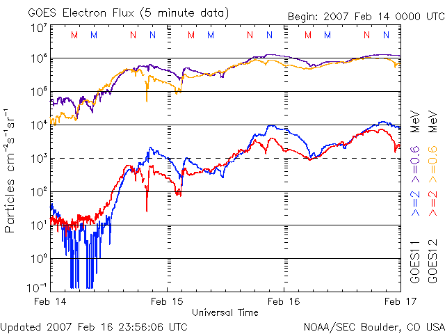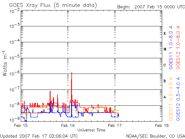 (c) NOAA/SEC ![]() GOES衛星の太陽X線データ (c) NOAA/SEC ![]() SOHO衛星のMDIカメラによる太陽黒点 (c) SOHO (ESA & NASA) ![]() | |||||||||||||||||||||||||||||||||||||||||||||||||||||||||||