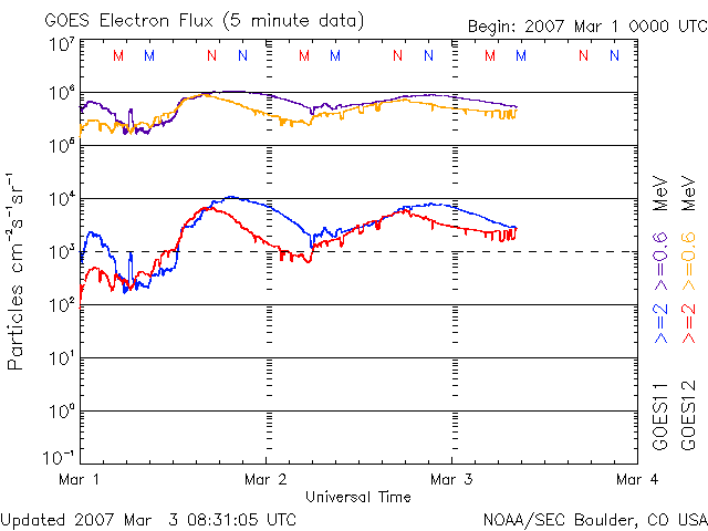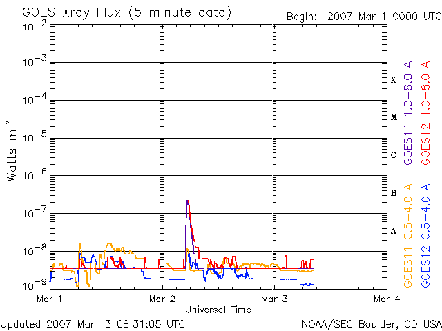 (c) NOAA/SEC ![]() GOES衛星の太陽X線データ (c) NOAA/SEC ![]() SOHO衛星のMDIカメラによる太陽黒点 (c) SOHO (ESA & NASA) ![]() | |||||||||||||||||||||||||||||||||||||||||||||||||||||||||||