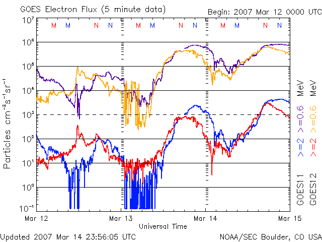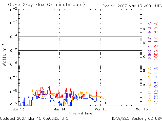 (c) NOAA/SEC ![]() SOHO衛星のMDIカメラによる太陽黒点 (c) SOHO (ESA & NASA) ![]() GOES衛星の太陽X線データ (c) NOAA/SEC ![]() | ||||||||||||||||||||||||||||||||||||||||||||||||||||||||||||