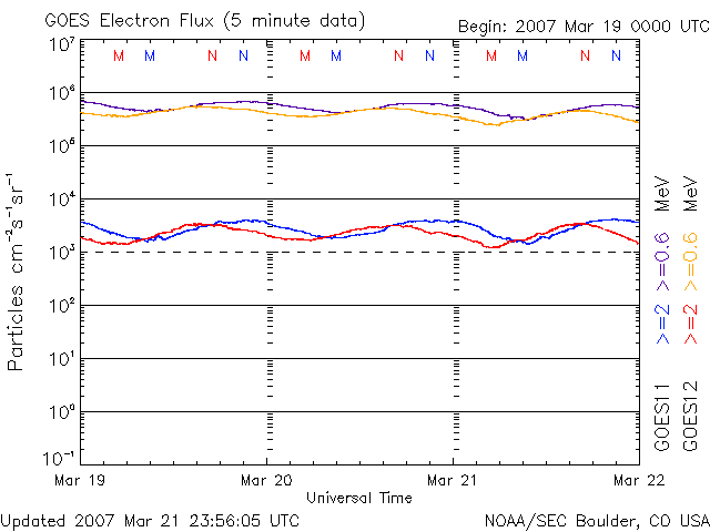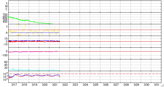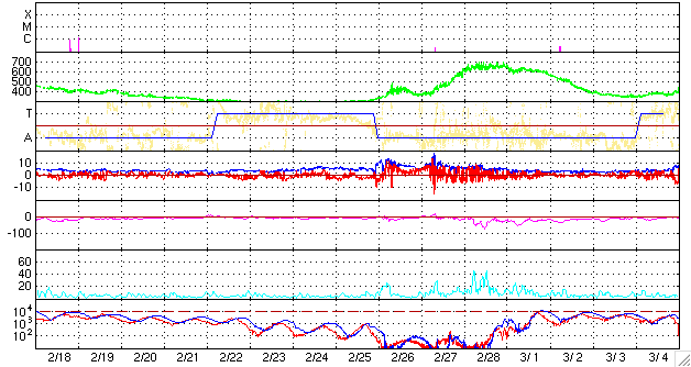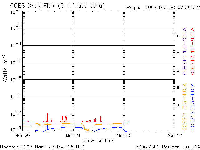 (c) NOAA/SEC ![]() GOES衛星の太陽X線データ (c) NOAA/SEC ![]() SOHO衛星のMDIカメラによる太陽黒点 (c) SOHO (ESA & NASA) ![]() | ||||||||||||||||||||||||||||||||||||||||||||||||||||||||||||