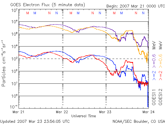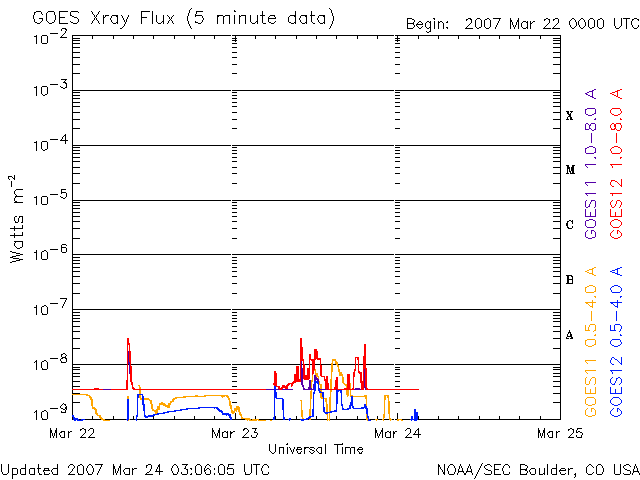 (c) NOAA/SEC ![]() SOHO衛星のMDIカメラによる太陽黒点 (c) SOHO (ESA & NASA) ![]() GOES衛星の太陽X線データ (c) NOAA/SEC ![]() | ||||||||||||||||||||||||||||||||||||||||||||||||||||||||||||