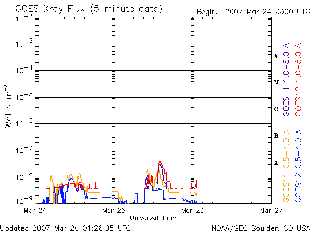 (c) NOAA/SEC ![]() SOHO衛星のMDIカメラによる太陽黒点 (c) SOHO (ESA & NASA) ![]() GOES衛星の太陽X線データ (c) NOAA/SEC ![]() | ||||||||||||||||||||||||||||||||||||||||||||||||||||||||||||