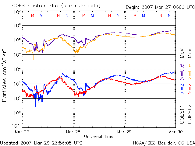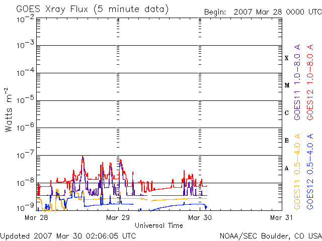 (c) NOAA/SEC ![]() SOHO衛星のMDIカメラによる太陽黒点 (c) SOHO (ESA & NASA) ![]() GOES衛星の太陽X線データ (c) NOAA/SEC ![]() | ||||||||||||||||||||||||||||||||||||||||||||||||||||||||||||