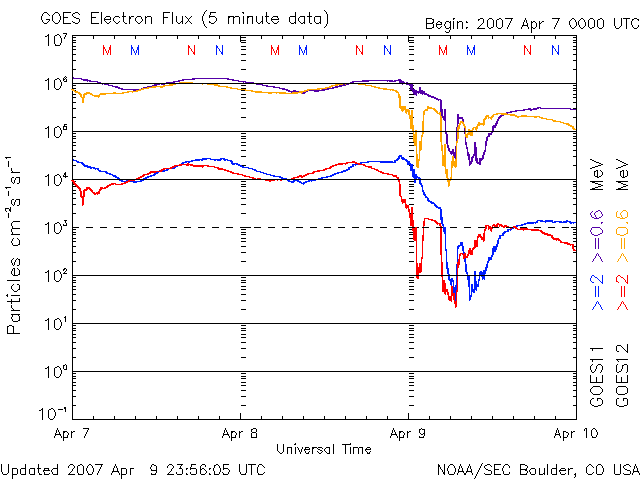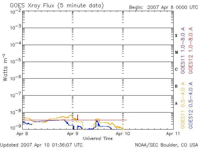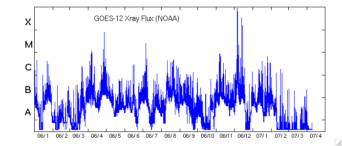 (c) NOAA/SEC ![]() SOHO衛星のMDIカメラによる太陽黒点 (c) SOHO (ESA & NASA) ![]() GOES衛星の太陽X線データ (c) NOAA/SEC ![]() | ||||||||||||||||||||||||||||||||||||||||||||||||||||||||||||