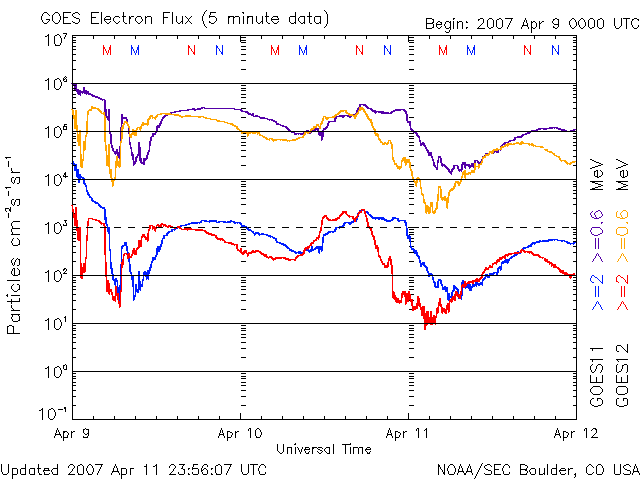 (c) NOAA/SEC ![]() SOHO衛星のMDIカメラによる太陽黒点 (c) SOHO (ESA & NASA) ![]() GOES衛星の太陽X線データ (c) NOAA/SEC ![]() | ||||||||||||||||||||||||||||||||||||||||||||||||||||||||||||