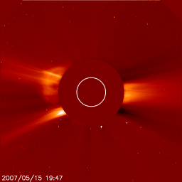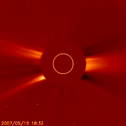 SOHO衛星のLASCO C2カメラの映像 (c) SOHO (ESA & NASA)