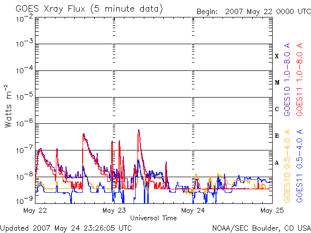 (c) NOAA/SEC ![]() SOHO衛星のMDIカメラによる太陽黒点 (c) SOHO (ESA & NASA) ![]() GOES衛星の太陽X線データ (c) NOAA/SEC ![]() | ||||||||||||||||||||||||||||||||||||||||||||||||||||||||||||||
