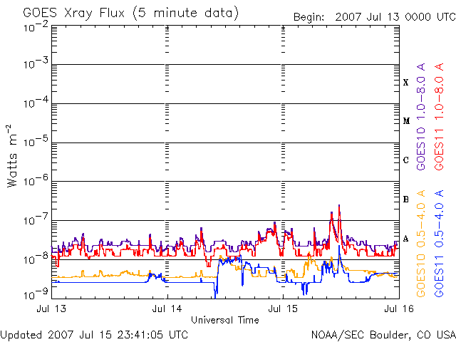 (c) NOAA/SEC ![]() SOHO衛星のMDIカメラによる太陽黒点 (c) SOHO (ESA & NASA) ![]() GOES衛星の太陽X線データ (c) NOAA/SEC ![]() | ||||||||||||||||||||||||||||||||||||||||||||||||||||||||||||||||