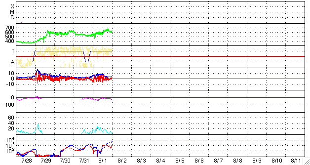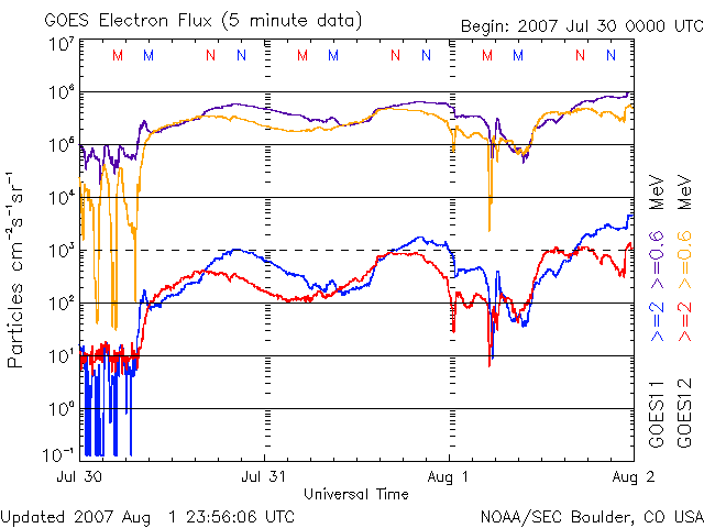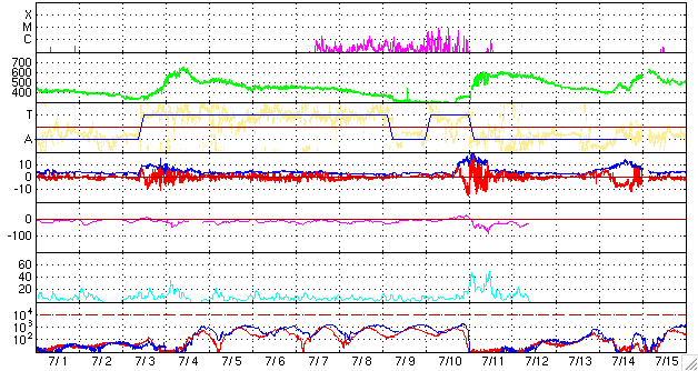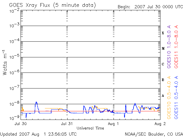 (c) NOAA/SEC ![]() SOHO衛星のMDIカメラによる太陽黒点 (c) SOHO (ESA & NASA) ![]() GOES衛星の太陽X線データ (c) NOAA/SEC ![]() | ||||||||||||||||||||||||||||||||||||||||||||||||||||||||||||||
