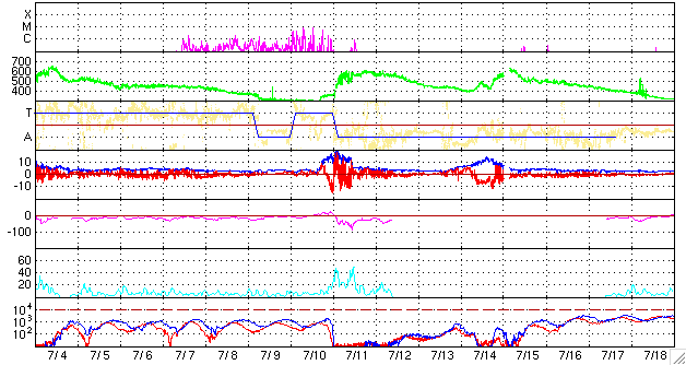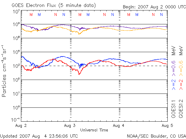 (c) NOAA/SEC ![]() SOHO衛星のMDIカメラによる太陽黒点 (c) SOHO (ESA & NASA) ![]() GOES衛星の太陽X線データ (c) NOAA/SEC ![]() | ||||||||||||||||||||||||||||||||||||||||||||||||||||||||||||||