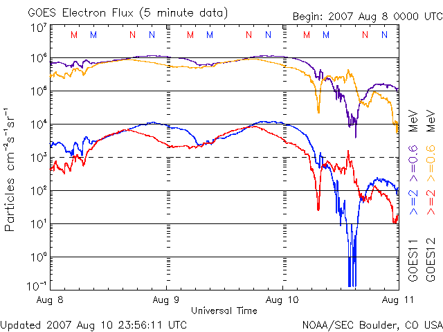 (c) NOAA/SEC ![]() GOES衛星の太陽X線データ (c) NOAA/SEC ![]() SOHO衛星のMDIカメラによる太陽黒点 (c) SOHO (ESA & NASA) ![]() | |||||||||||||||||||||||||||||||||||||||||||||||||||||||||||||||