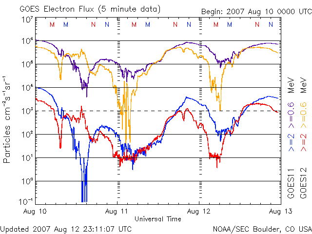 (c) NOAA/SEC ![]() SOHO衛星のMDIカメラによる太陽黒点 (c) SOHO (ESA & NASA) ![]() GOES衛星の太陽X線データ (c) NOAA/SEC ![]() | ||||||||||||||||||||||||||||||||||||||||||||||||||||||||||||||||