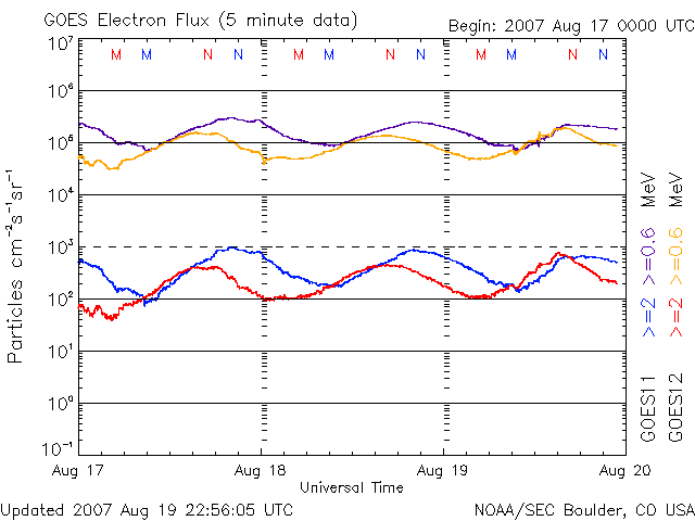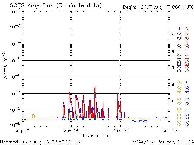 (c) NOAA/SEC ![]() GOES衛星の太陽X線データ (c) NOAA/SEC ![]() SOHO衛星のMDIカメラによる太陽黒点 (c) SOHO (ESA & NASA) ![]() | ||||||||||||||||||||||||||||||||||||||||||||||||||||||||||||||