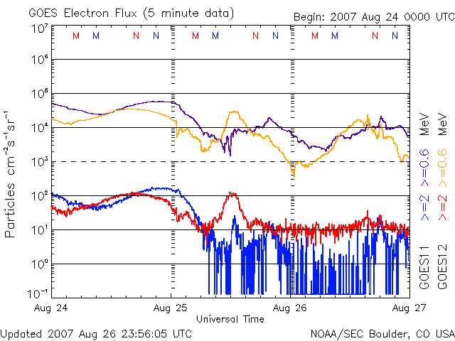 (c) NOAA/SEC ![]() SOHO衛星のMDIカメラによる太陽黒点 (c) SOHO (ESA & NASA) ![]() GOES衛星の太陽X線データ (c) NOAA/SEC ![]() | ||||||||||||||||||||||||||||||||||||||||||||||||||||||||||||||